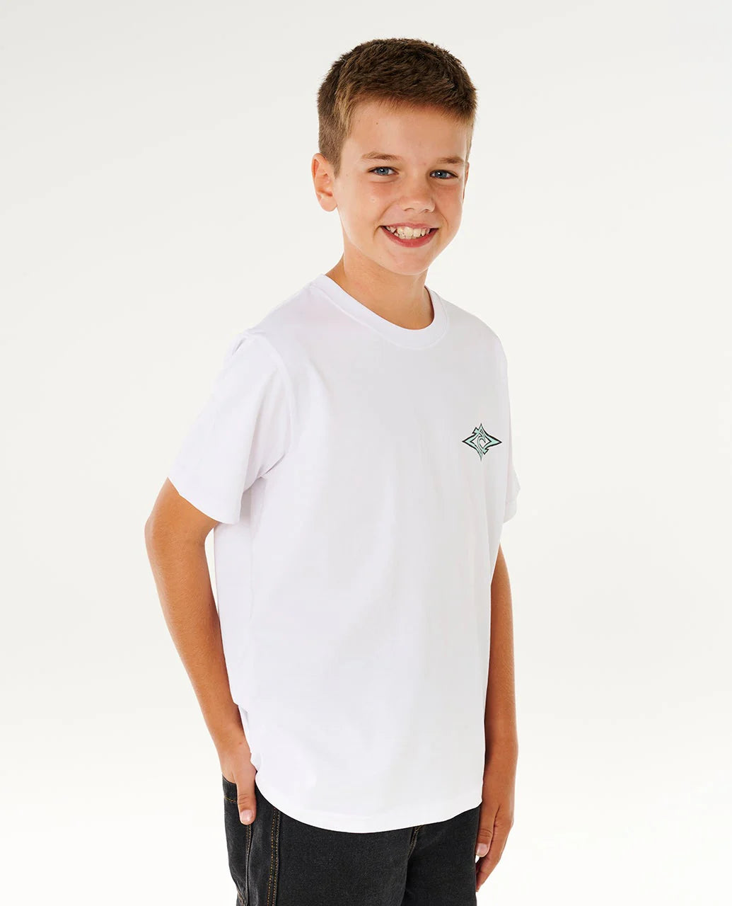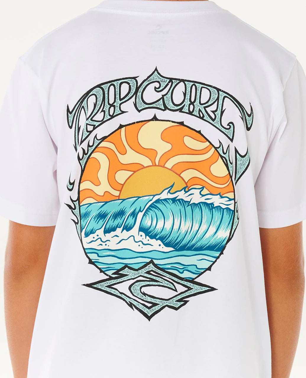 Catch the laid-back vibes with the Rip Curl Boy's Hazey Days Tee. Featuring bold front and back prints and a woven flag label, this tee delivers authentic surf style with playful character. Cut in a relaxed standard fit from 100% cotton, it's designed for all-day coastal comfort—whether you're at the beach or just channelling that beachy energy. Short sleeves keep things cool and casual.