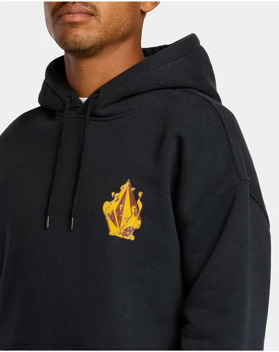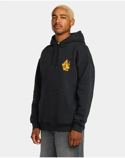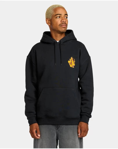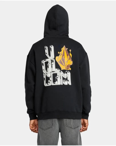 Stay cozy and stylish with the Volcom Featured Artist Callum Rooney Pull Over in Antique Black. This loose-fit hoodie features vibrant front and back screen prints showcasing Callum Rooney’s unique art. Made from soft BCI Cotton 330g fleece with 80% cotton and 20% recycled polyester, it’s comfy and eco-friendly. Finished with Volcom branded metal trims, it’s perfect for adding a playful edge to your casual look.