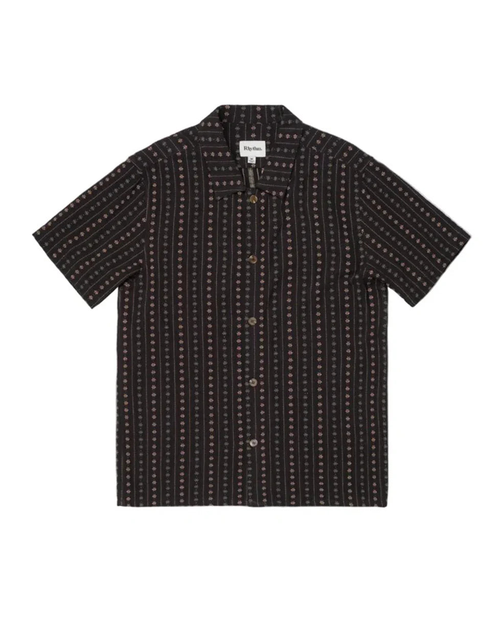 The Rhythm Dakota Stripe Short Sleeve Shirt features a chest pocket, one-piece collar, and plastic button closure, this shirt is crafted for everyday wear with a vintage touch.