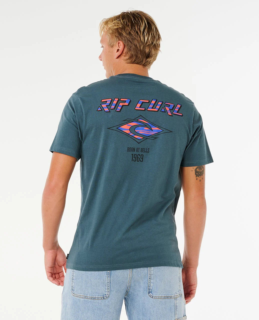 Fade into style with the Rip Curl Fade Out Icon Tee, featuring a woven flag label, front and back print for a fashionable and iconic surf statement.