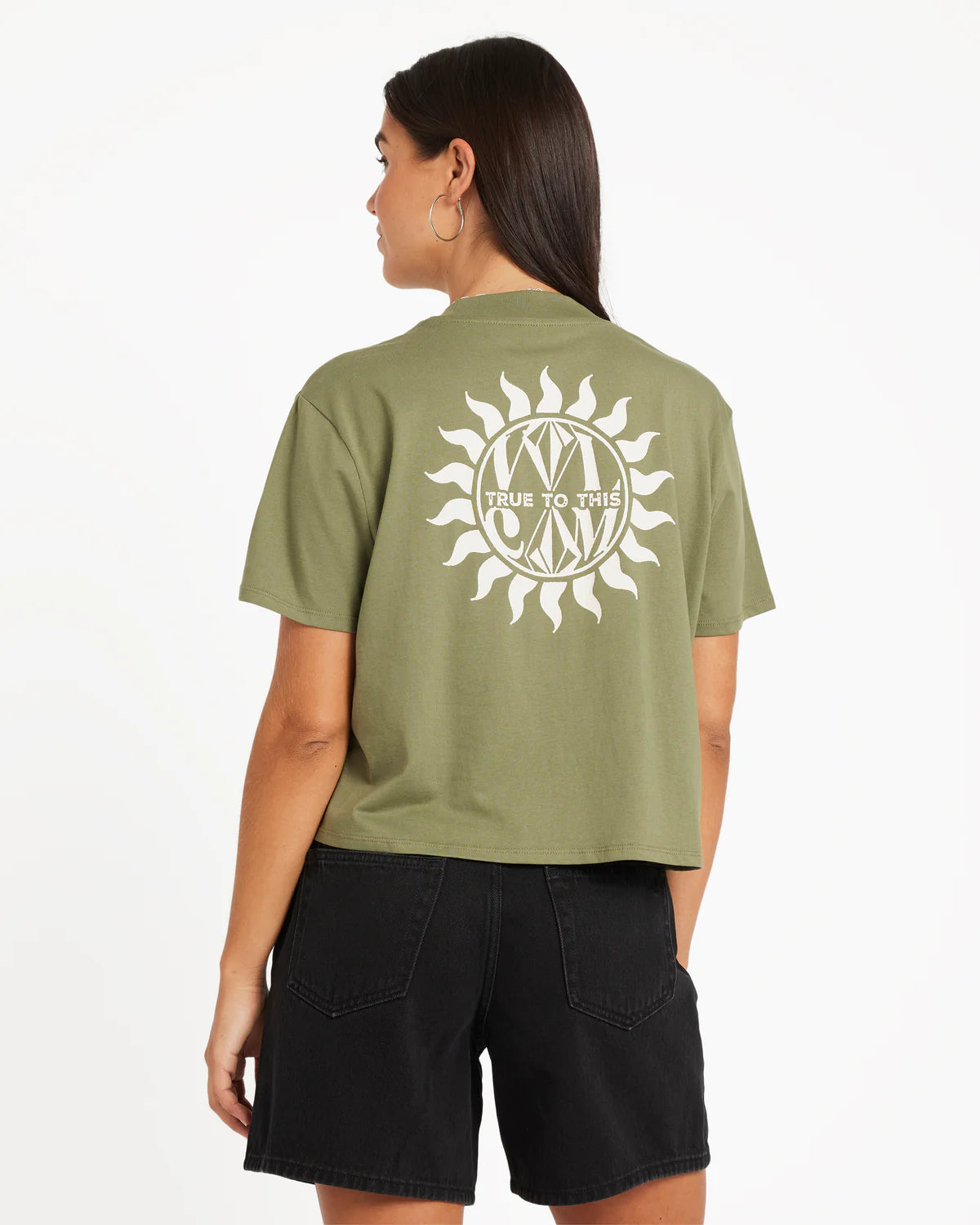 Dial Crop Tee Ladies - Moss Stone
