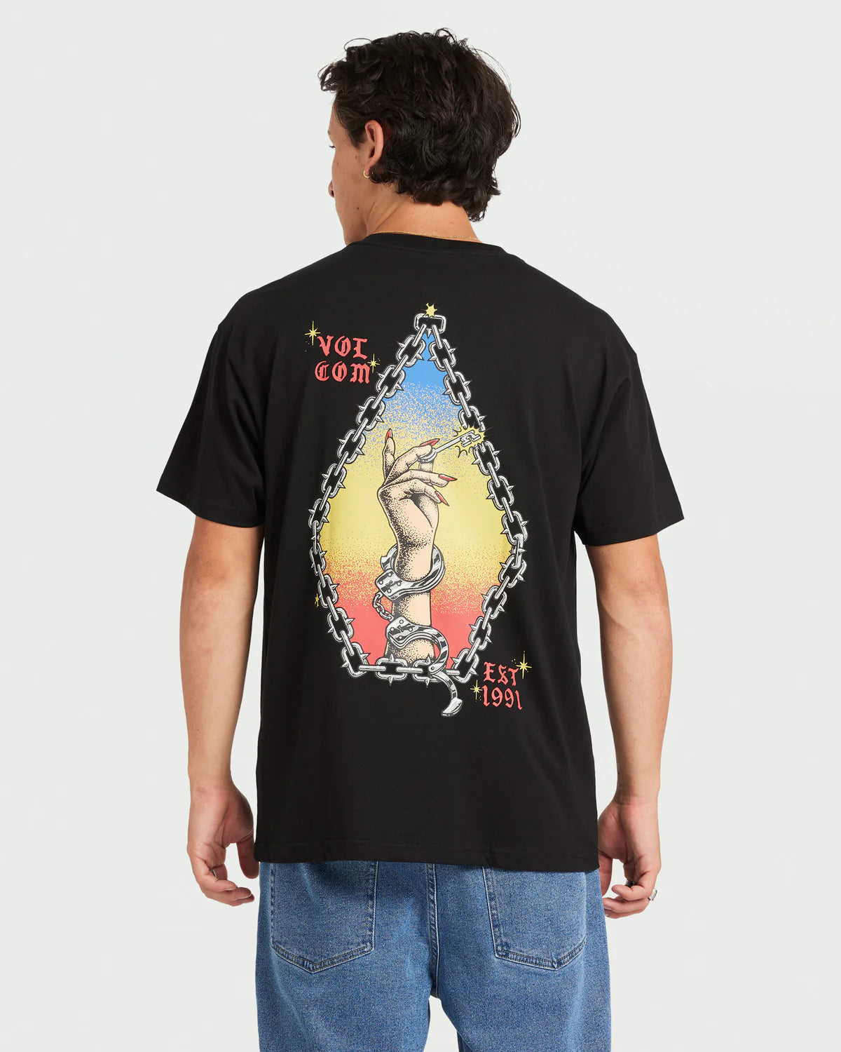 Celebrate the creative vision of featured artist Daniel Shepard with this laid-back Unlocked SST tee. Cut in a relaxed, loose fit that's perfect for effortless style, it features a soft hand screen print that feels as good as it looks. The crew neck is finished with self neck tape for durability and comfort. Rock this black colour way and support independent artistry with every wear.