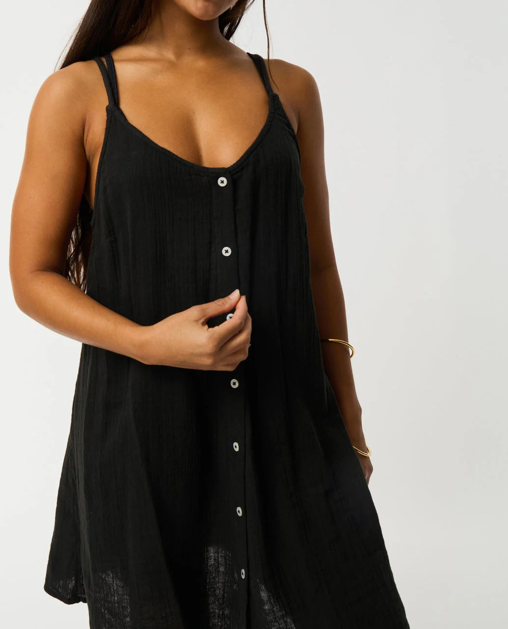 Catch the summer vibes and keep it chill with the Rip Curl Premium Surf Cover Up. Made from soft cotton double-weave gauze, this relaxed fit cover-up has just the right amount of beachy appeal. The short length is perfect for throwing over your swimsuit, while the button-through style adds a cool, laid-back detail. Adjustable shoulder straps ensure the perfect fit, and with its garment wash finish, this cover-up feels as good as it looks. The metal logo trim keeps the look polished while keeping you breezy and effortless.