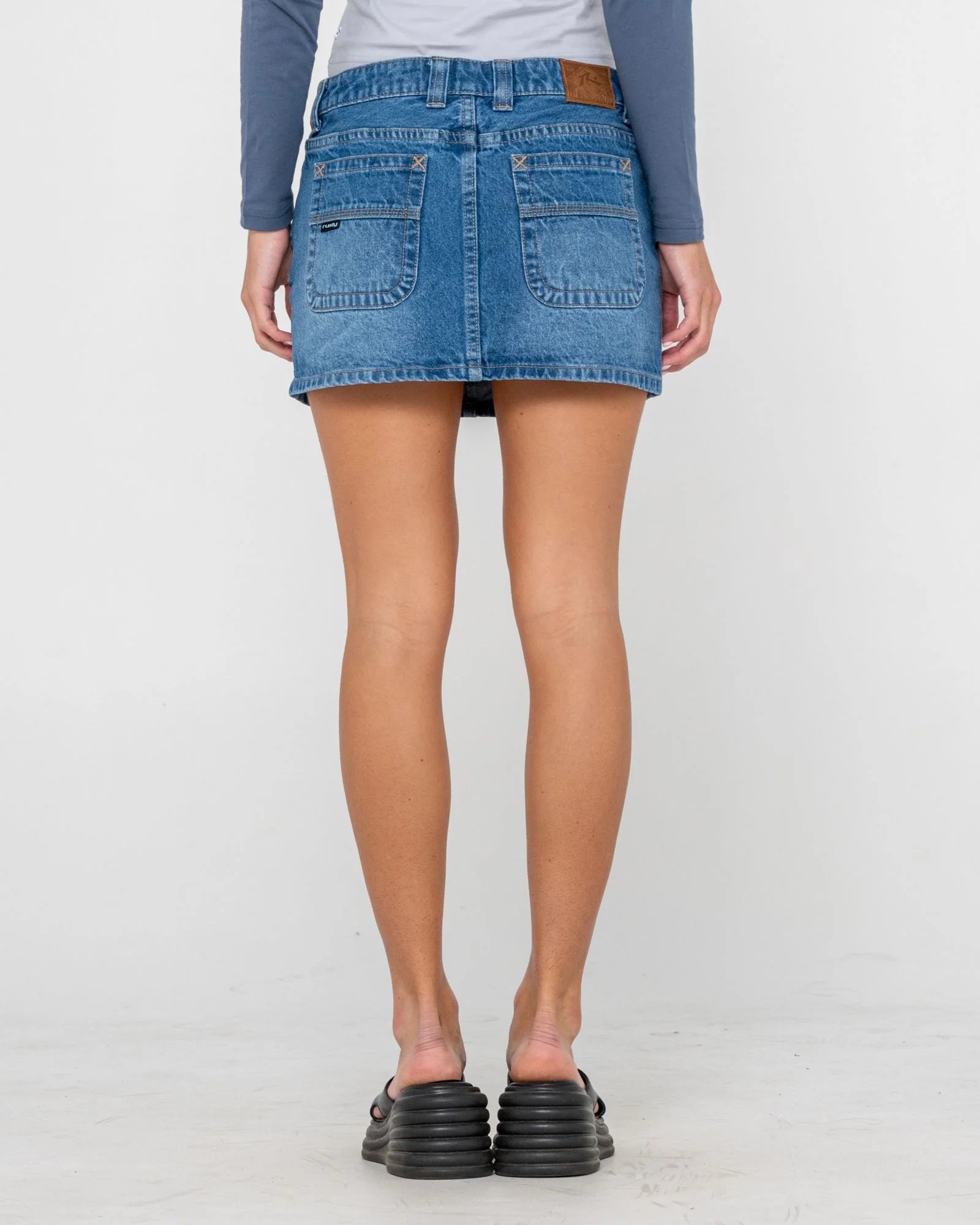 Rusty Women's Mavericks Low Rise Denim Mini Skirt - Blasted Middy Blue