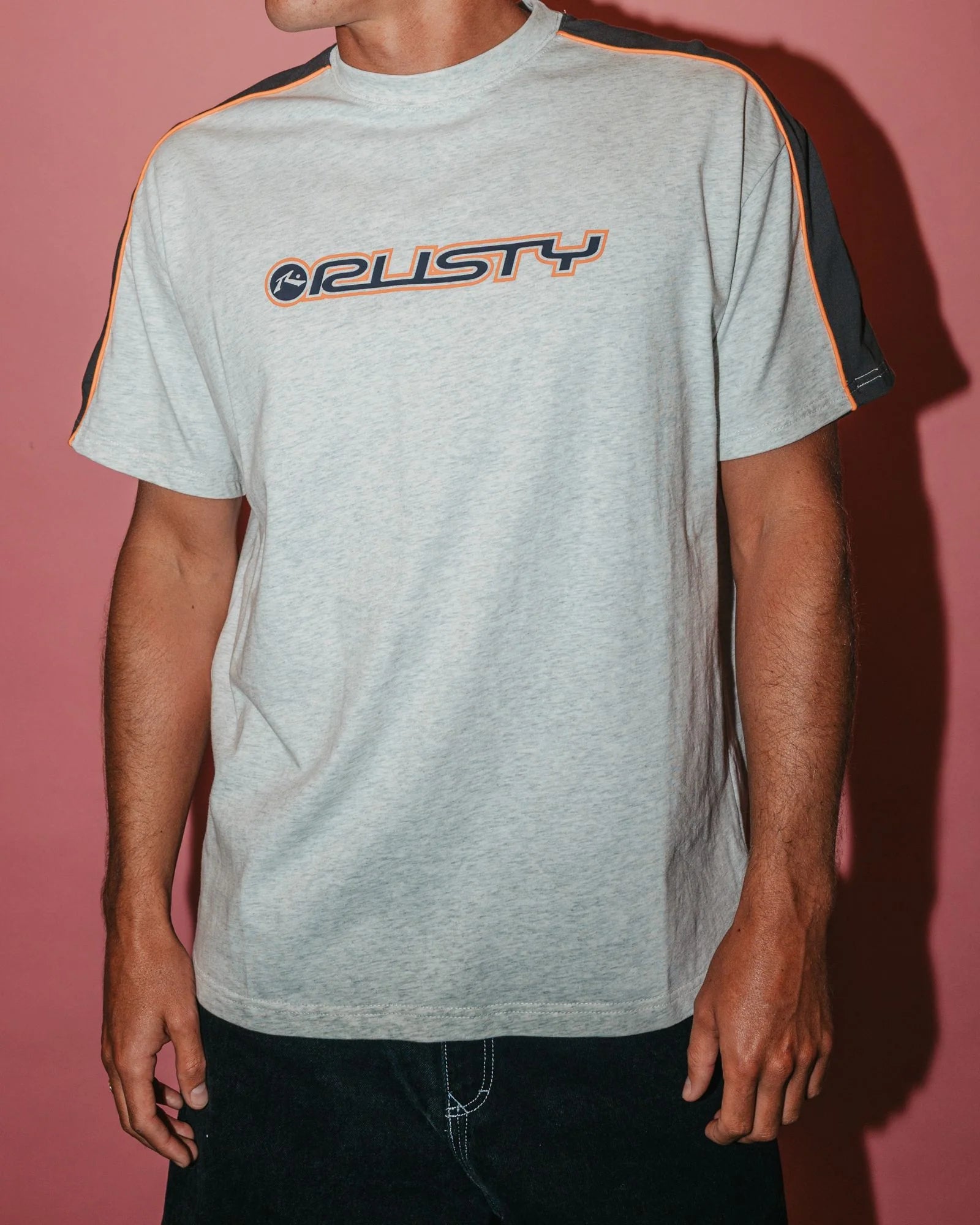 The Alonso Short Sleeve tee in Ecru Marle brings a fun Y2K vibe with its panelled detail and piping accents. Crafted from soft 100% cotton jersey, it offers a comfy regular OG fit perfect for everyday wear. Featuring a bold rusty print on the chest, this short-sleeve shirt effortlessly blends vintage charm with modern style for a playful, standout look.